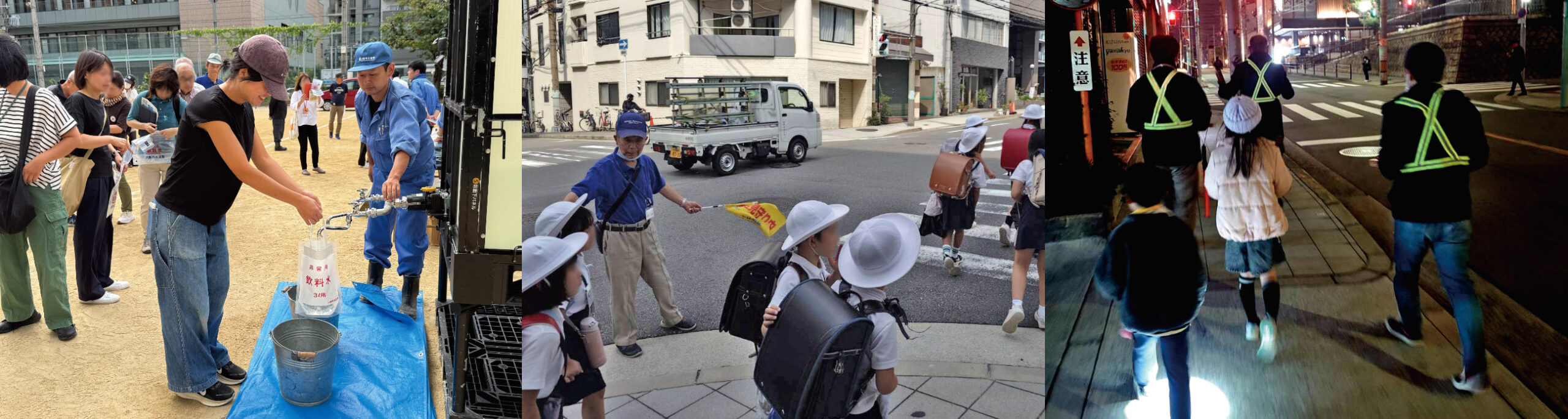 南大江地域では、だれもが安心して暮らし、災害時にも助け合えるまちづくりを進めるために、各町会がさまざまな活動を行っています。