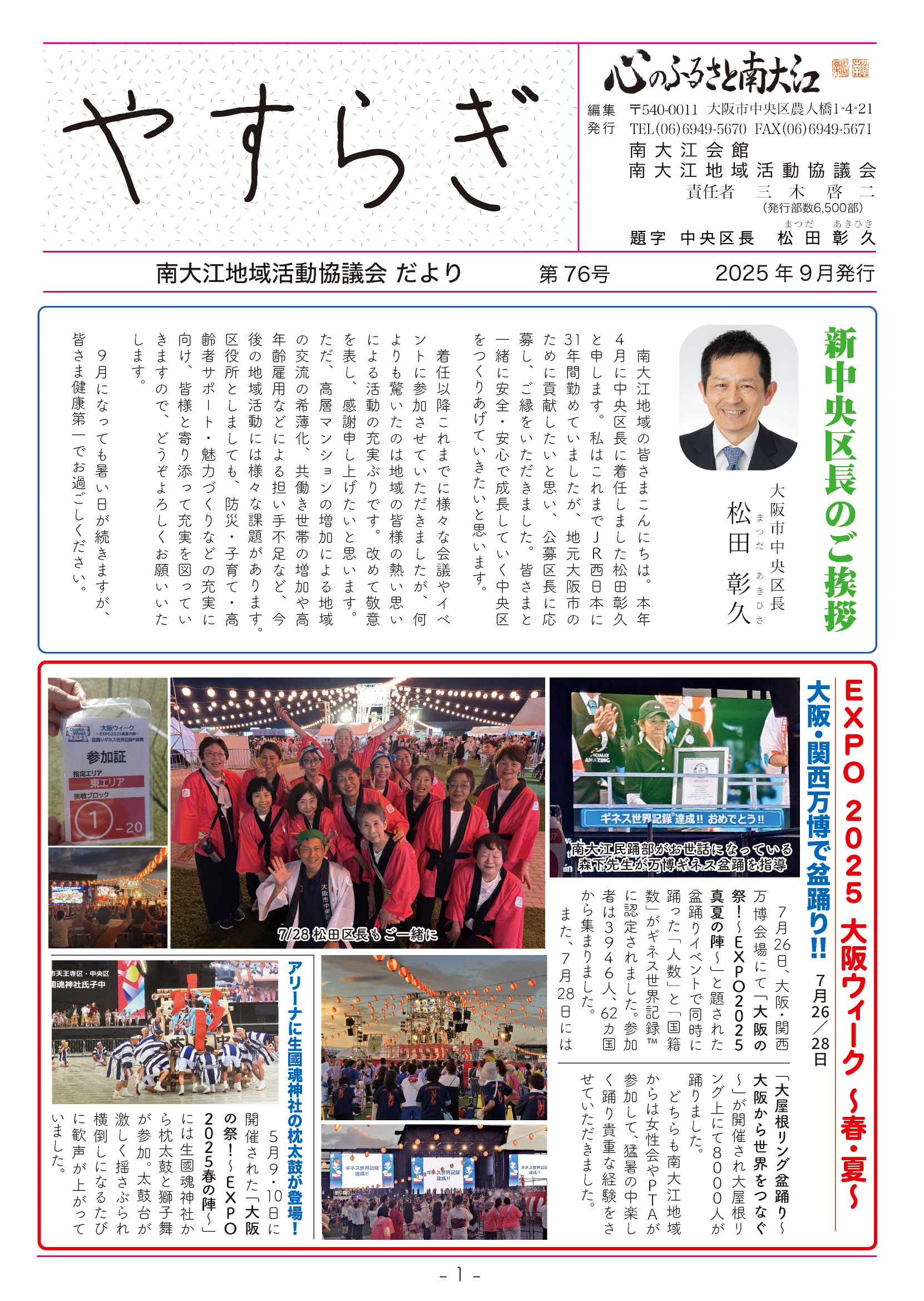 南大江地域活動協議会だより「やすらぎ新聞」第76号発刊しました。