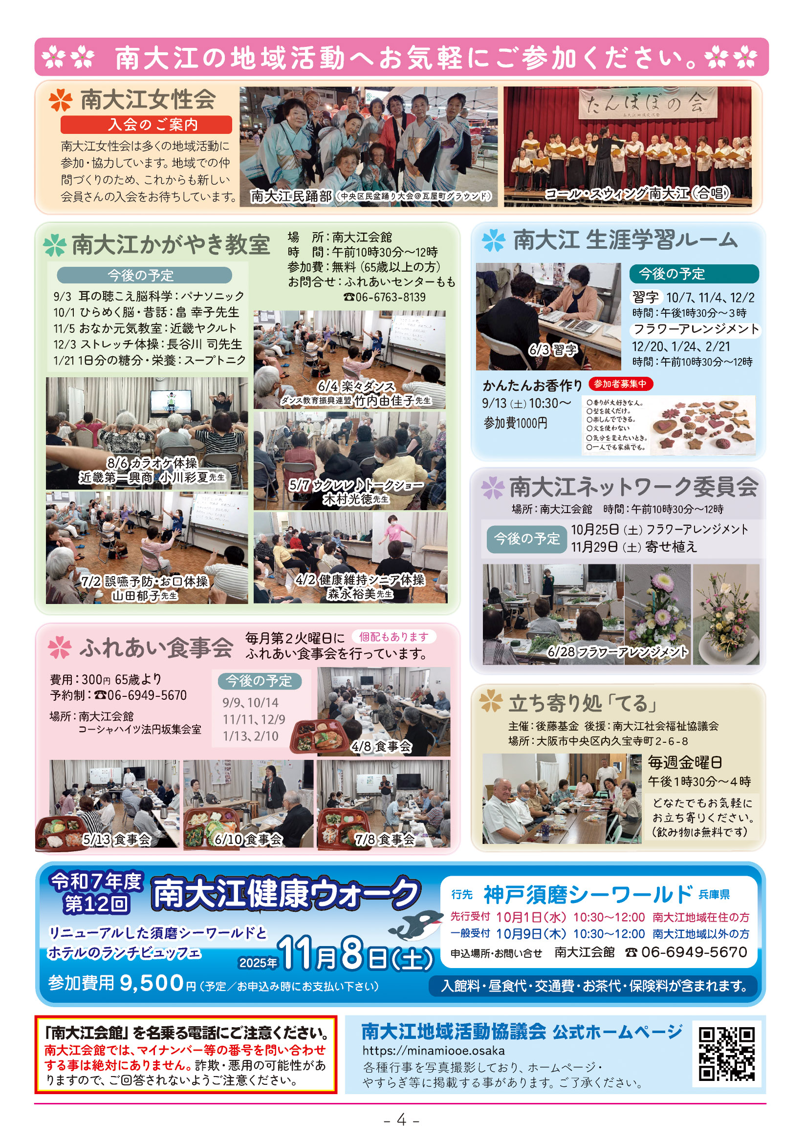 大阪市中央区 南大江地域(南大江西連合・南大江東連合)にお住まいの皆様の地域活動を応援します